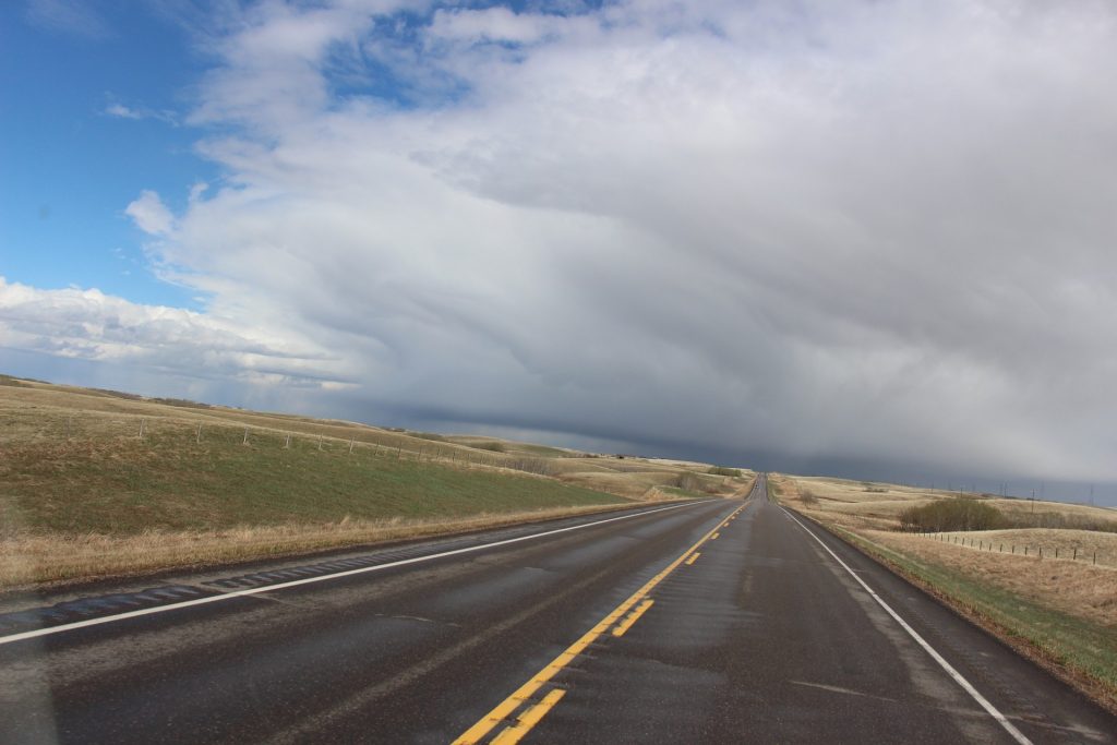 Drive from Drumheller to Kindersley with some rain.