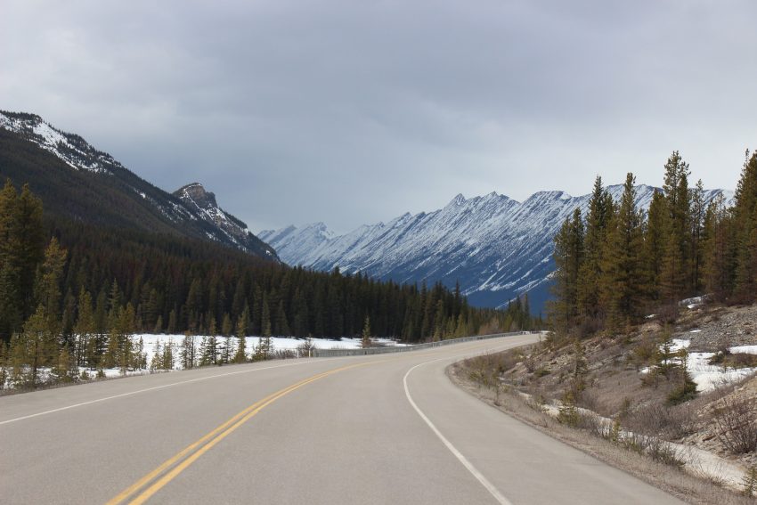 Driving between Lake Louise and Jasper.